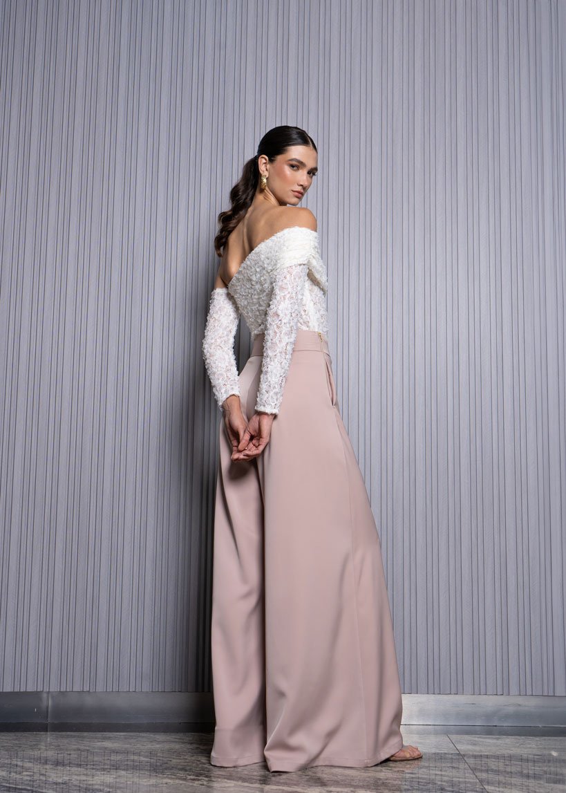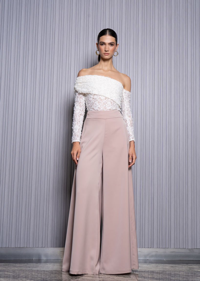Nuestra blusa Nohemi medio beso tiene un detalle de banda en el escote resaltando esa zona con sutileza, mientras que la tela blonda en la que está elaborada le da un aire exclusivo y único, adaptándose con facilidad a cualquier ocasión.