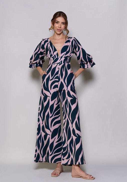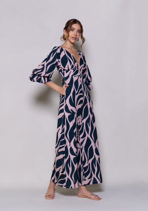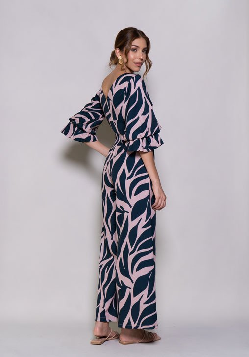 Las mangas largas abullonadas completan el look con un aire romántico, mientras que la silueta amplia del pantalón estiliza la figura, haciéndote lucir más alta y elegante.