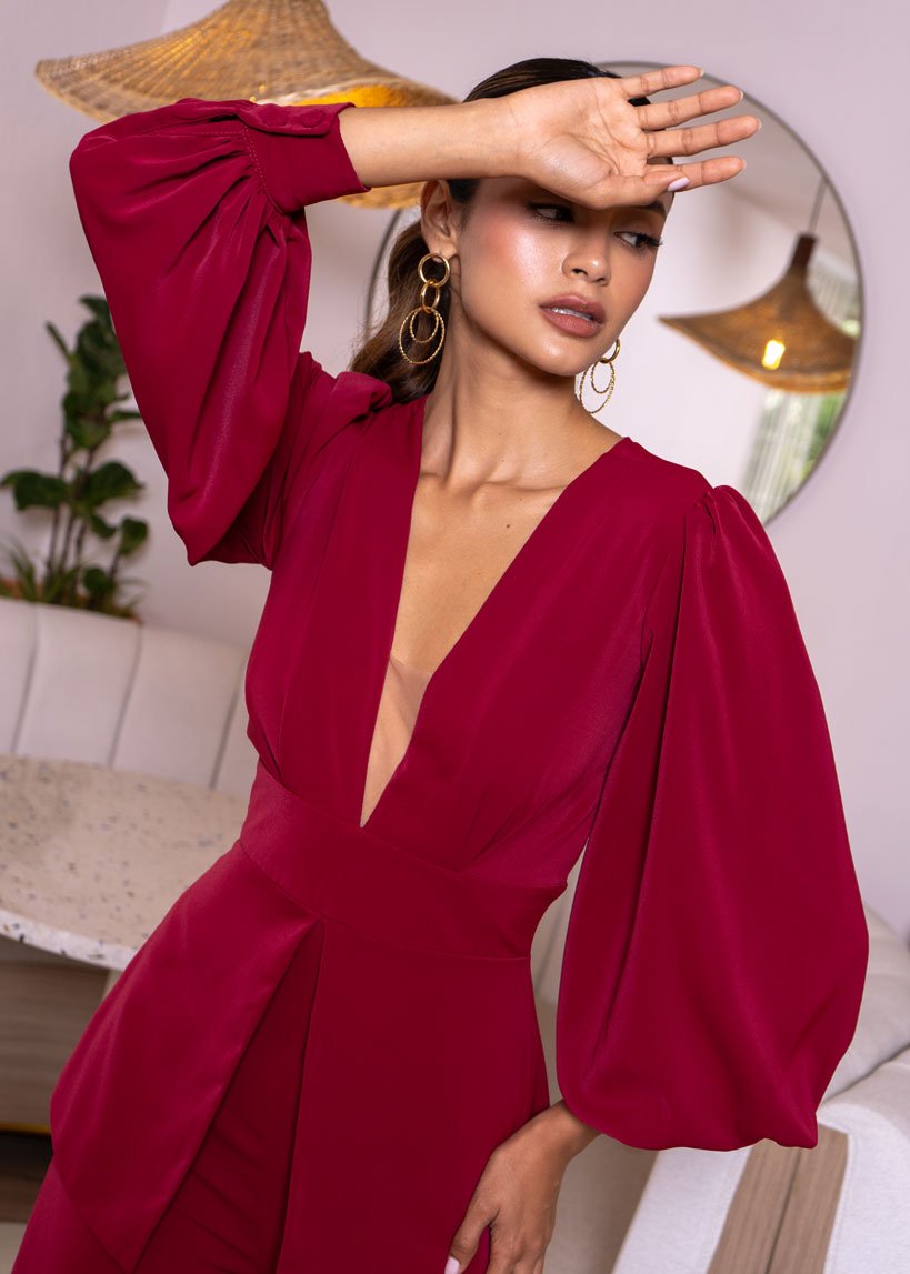 Su sobrio y elegante color, este enterizo es perfecto para eventos especiales donde cada mirada será cautivada por su diseño refinado y detallado. Su estructura impecable lo convierten en una opción ideal para destacar con estilo y sofisticación en cualquier ocasión importante. ¡Una prenda que no pasará desapercibida!