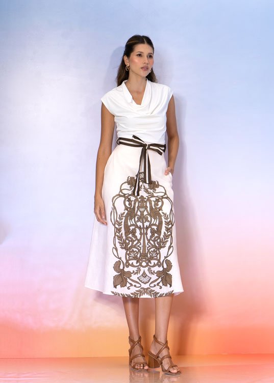 Esta falda destaca por su diseño encantador y su estampado cuidadosamente acomodado, lo que la convierte en una prenda verdaderamente única. Su cinturón removible añade un toque especial que realza su estilo y versatilidad. Perfecta para cualquier ocasión, puedes combinarla de manera formal con tacones o crear un look casual con tenis o sandalias.