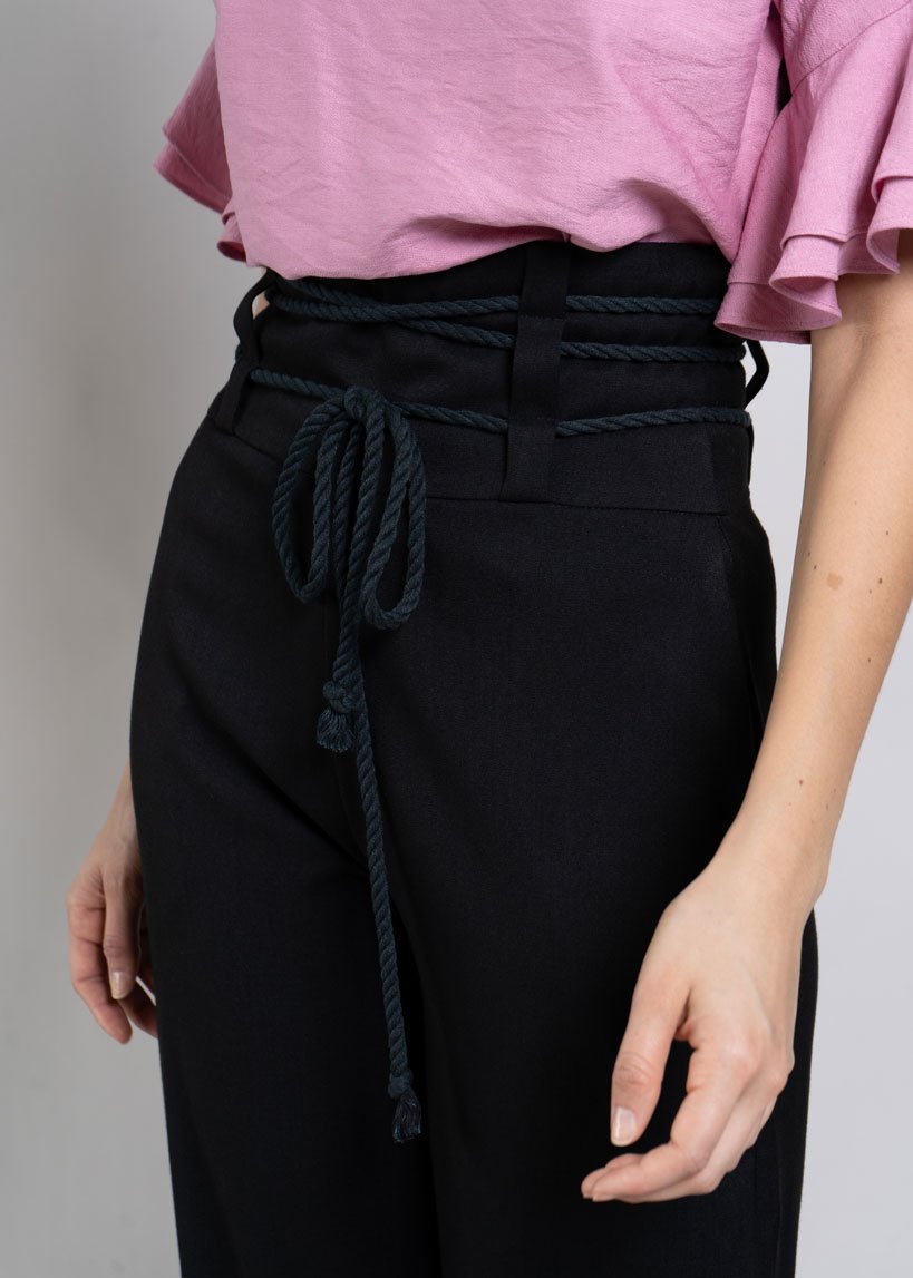 Un pantalón negro es una prenda imprescindible en nuestro armario y nuestro pantalón Juno no solo es elegante y atemporal, sino que su silueta de cintura superalta resalta y estiliza la figura de una forma increíble y su detalle de cordón a tono para anudar en cintura le agrega un toque de estilo y sofisticación que amaras. Crea infinitos looks con esta hermosa y practica pieza.
