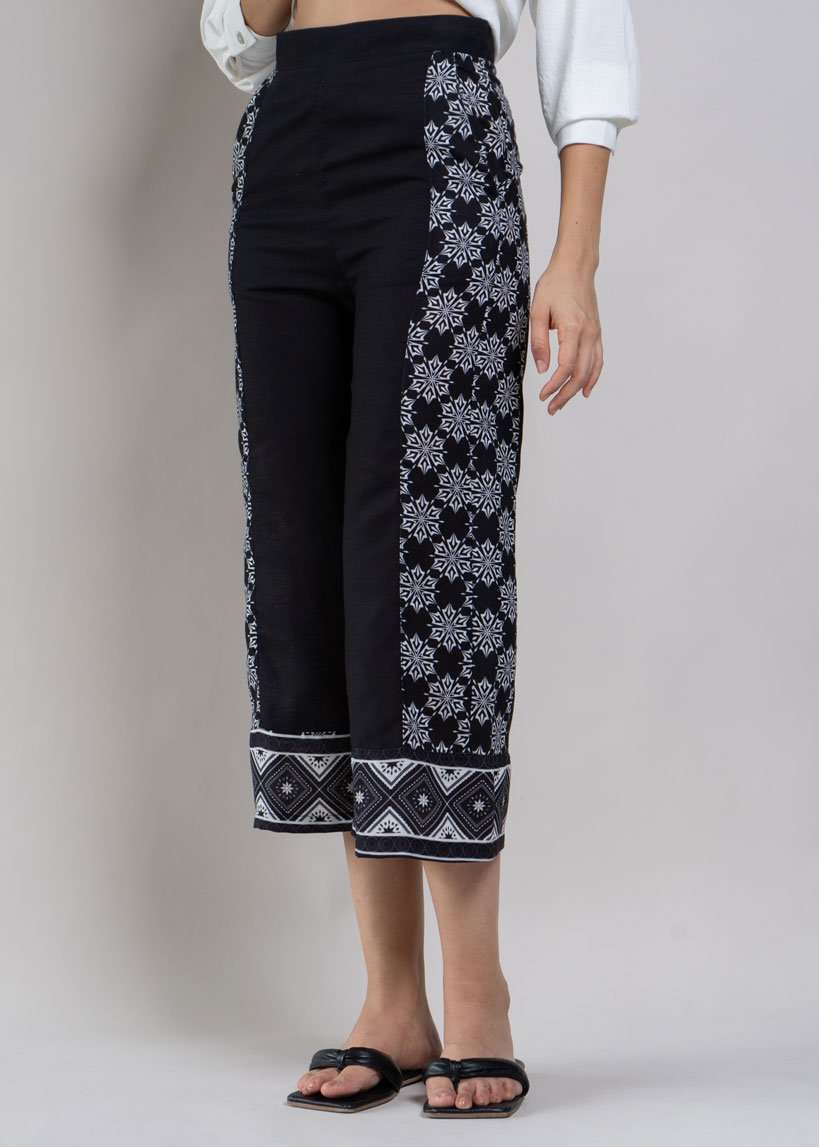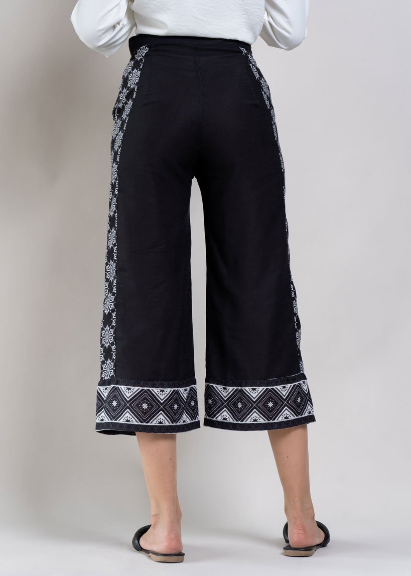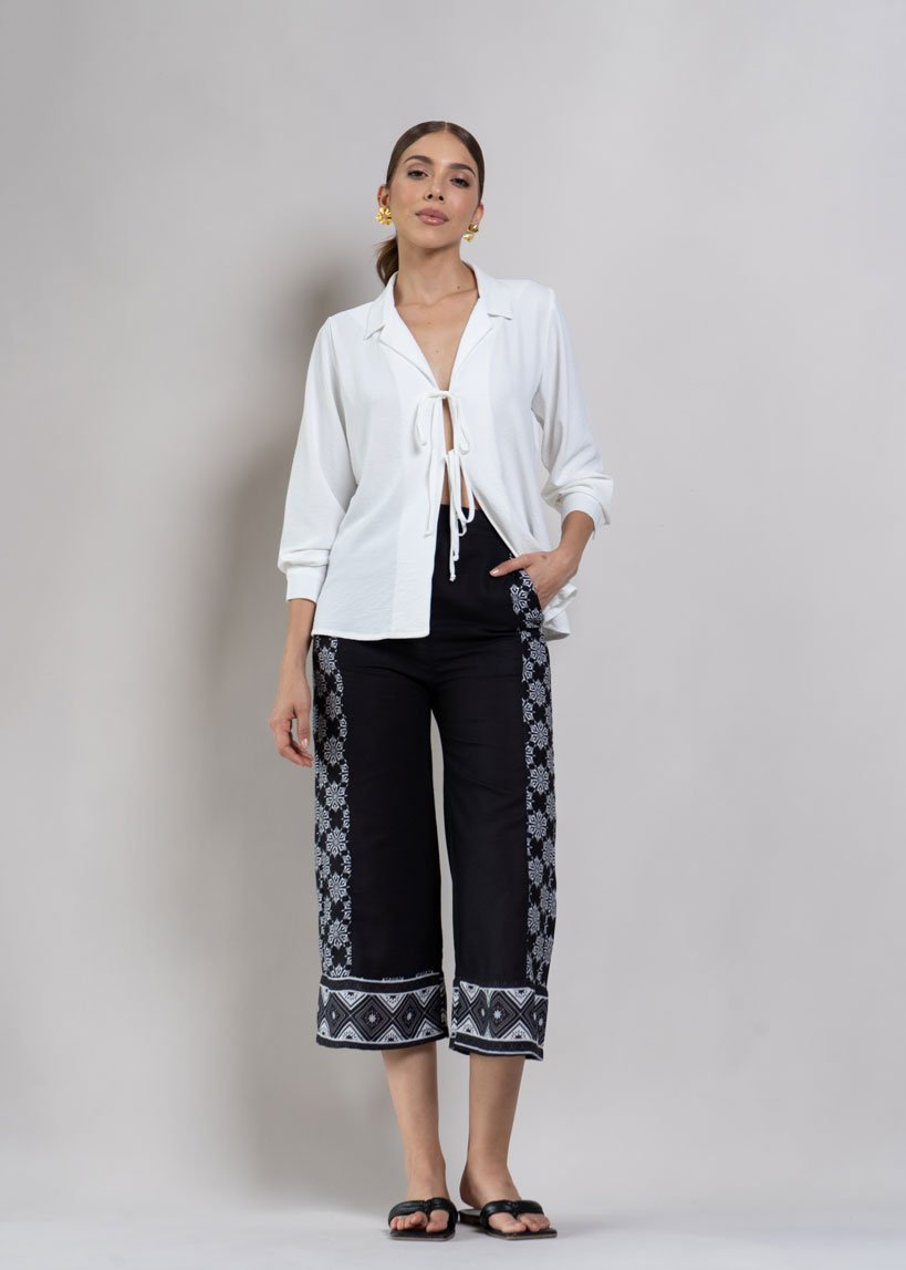 Nuestro pantalón Portus es una apuesta segura si lo que quieres es comodidad, pero sin perder el estilo, su silueta tipo culotte te permite combinarlo con diferentes tipos de calzado, desde unas cómodas sandalias planas hasta unos elegantes stilettos. Su juego de estampados coordinados estratégicamente ubicados en costados y ruedo del pantalón le agregan un toque vanguardista a tu look.