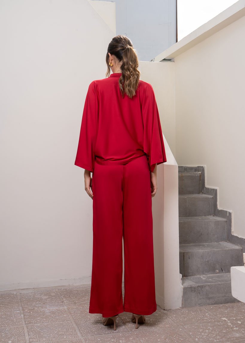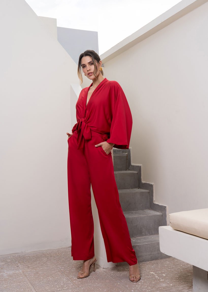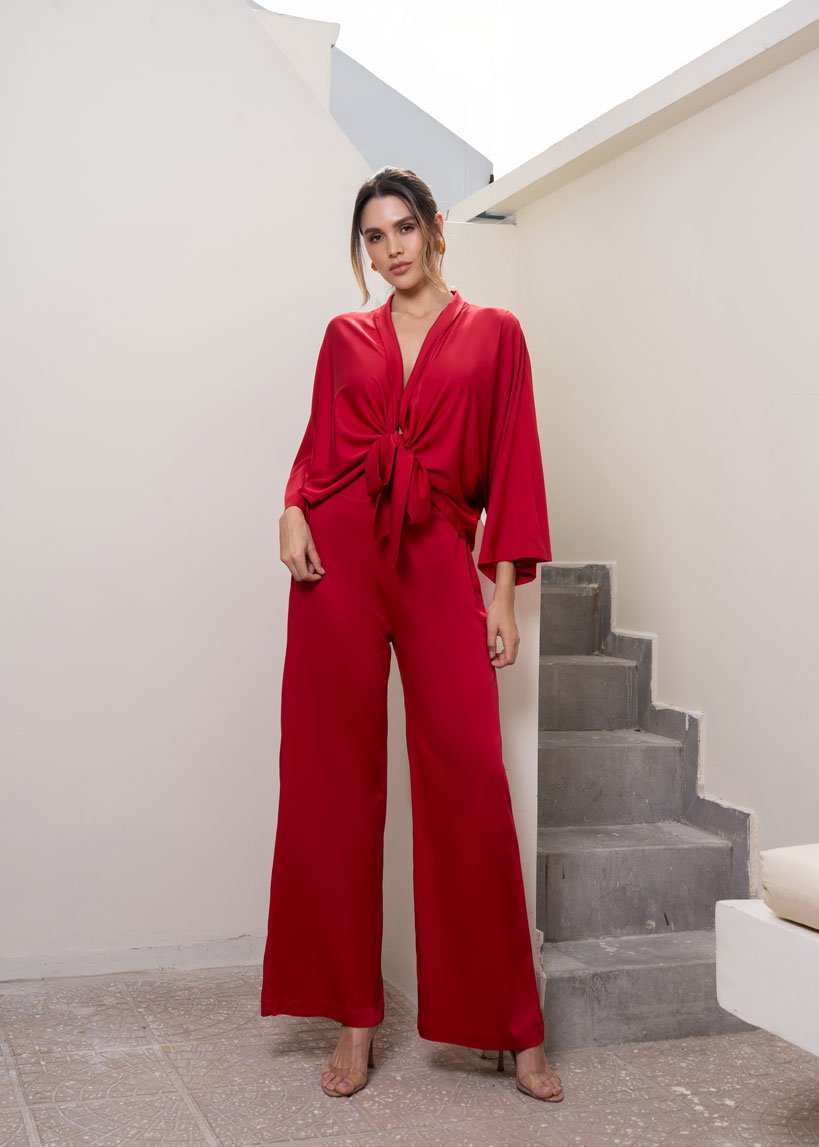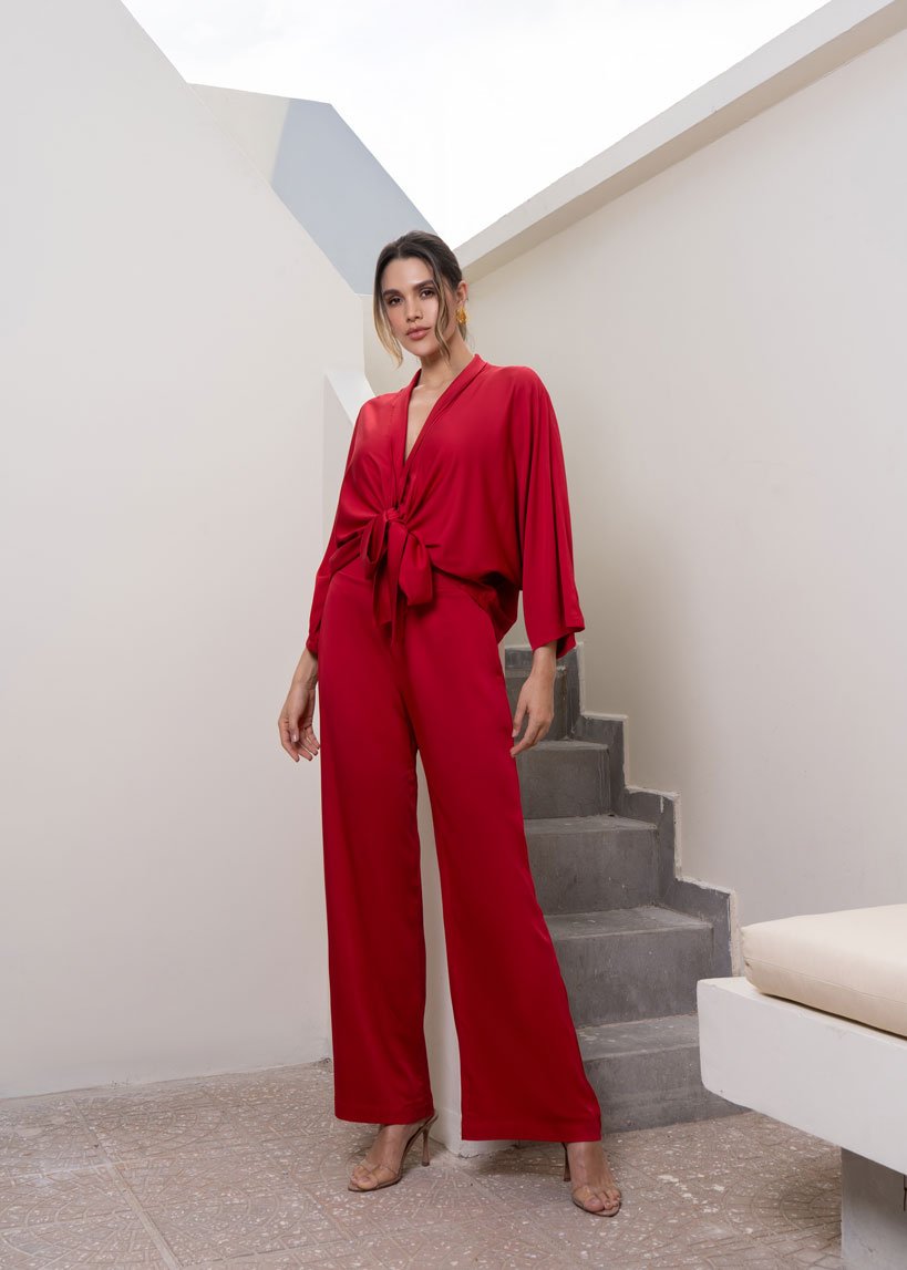 Este set, elaborado en un fresco y suave rayón satinado strech, es la elección perfecta para quienes buscan un equilibrio entre comodidad, frescura y sofisticación. La blusa, con un diseño envolvente, te ofrece la posibilidad de anudarla de distintas maneras, permitiéndote crear un look único. Su caída ligera y el toque de fluidez le dan una sensación de libertad, mientras que su estructura sofisticada garantiza un estilo casual pero elegante.