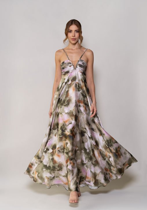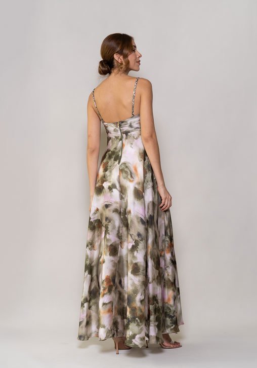 Su print floral, discretamente atractivo, añade un aire de frescura y sofisticación, perfecto para destacar en cualquier ocasión especial.