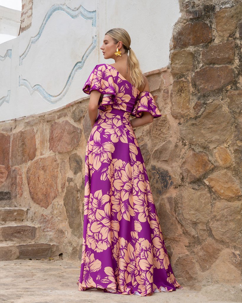 Este maxivestido destila sofisticación y delicadeza. Su escote medio beso y manga que cae en un delicado bolero rematado con una pieza en tono a juego en su borde, le dan todo el estilo a este vestido para lograr un look limpio pero muy femenino y etéreo.