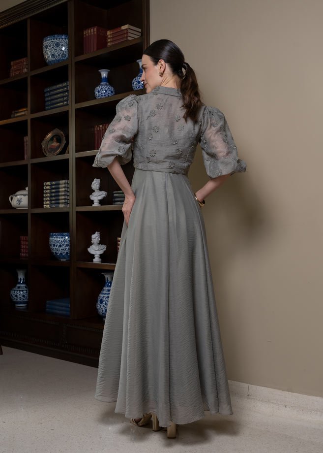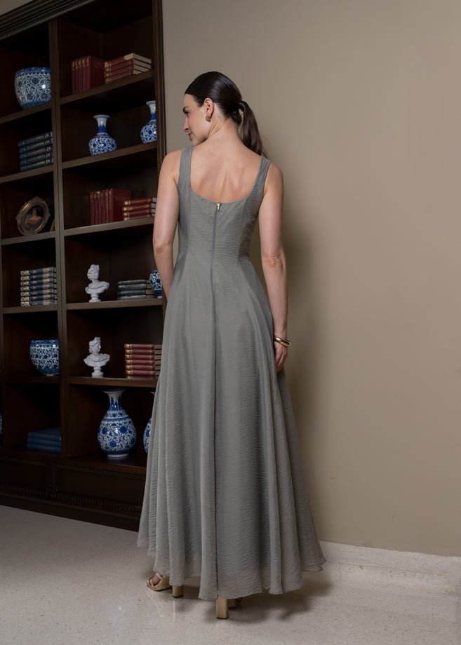 Déjate envolver por la sutileza y el encanto de este vestido diseñado para enamorar a primera vista. Elaborado en un delicado velo de caída ligera, su silueta fluida acaricia el cuerpo con suavidad, creando un movimiento etéreo que acompaña cada paso con gracia y naturalidad.