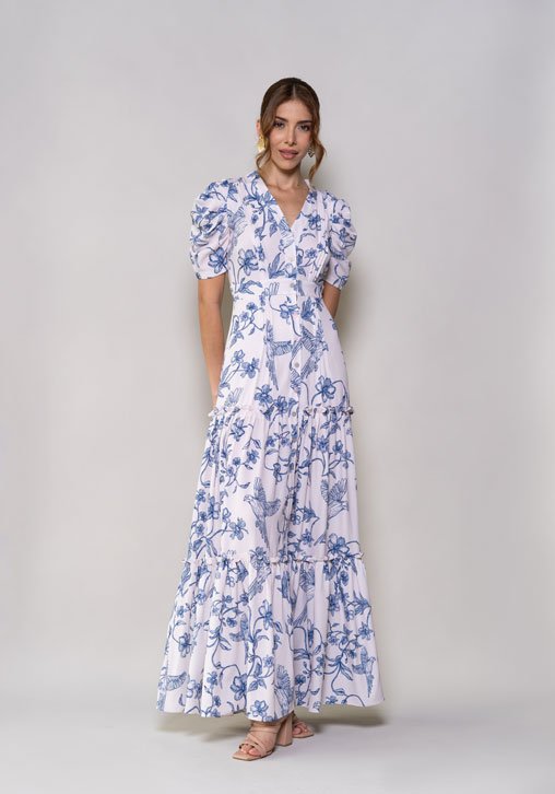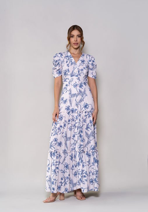 El Vestido Sienna es la combinación perfecta entre elegancia y frescura. Su escote en V con botonera funcional aporta un toque sofisticado, mientras que sus mangas abullonadas con pliegues y el detalle de alforzas en el delantero añaden delicadeza al diseño. La falda con bloques de golas fruncidas crea movimiento y volumen, brindando un look etéreo y encantador. Ideal para un matrimonio en la playa, un date de verano o una salida especial, este vestido es la opción perfecta para lucir espectacular sin sacrificar comodidad.